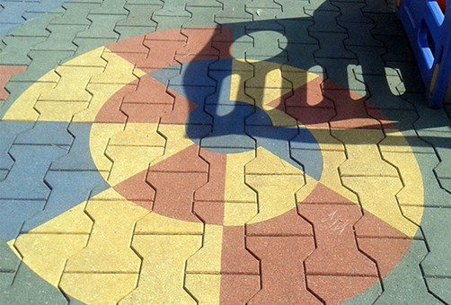 工字型橡膠地磚是以橡膠顆粒為主要原料,經科學新工藝合成的一種新型環保產品。磚體制成雙色,上下二層結構,面層用較細的彩色顆粒,底層用較粗的黑色顆粒,上下兩層緊密粘合連接。防滑、耐磨、隔音、抗老化、壽命長、有彈性、防護性能好、色彩艷麗、安全系數大、施工簡單方便,可用膠粘劑粘接鋪設,也可直接鋪設。